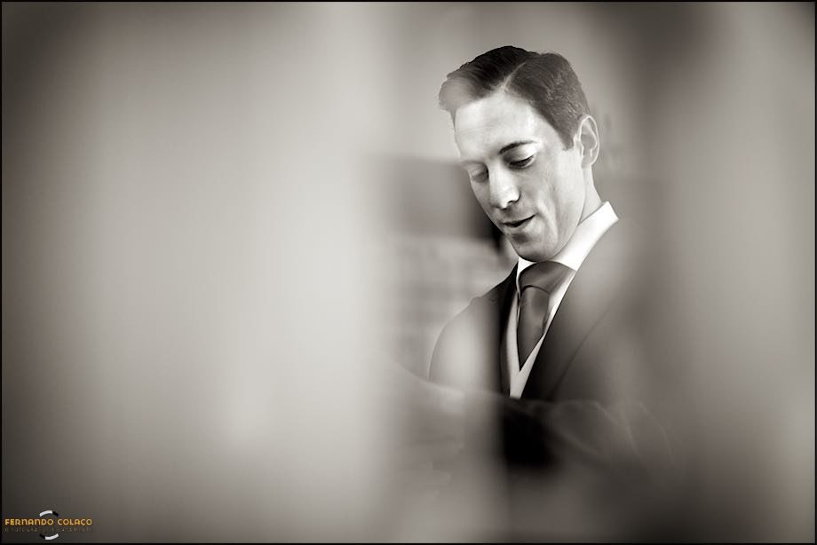 The photo is of the groom as he is about to leave for the wedding ceremony at the Basilica of Mafra