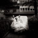 Muitas vezes, o espaço de transição entre a casa e o carro pode parecer pouco fotogénico. Mas para um fotógrafo de casamento experiente, isso não representa um obstáculo.