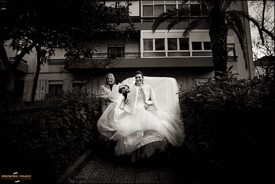Quando a noiva, já na rua, parte para a cerimónia do casamento na Basílica Mafra